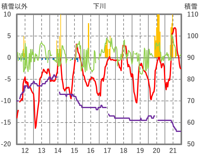 | 日 | 時 | 気温 | 降水 | 風向/風速 | 日照 | 積雪 | 降雪 |