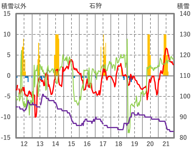 | 日 | 時 | 気温 | 降水 | 風向/風速 | 日照 | 積雪 | 降雪 |