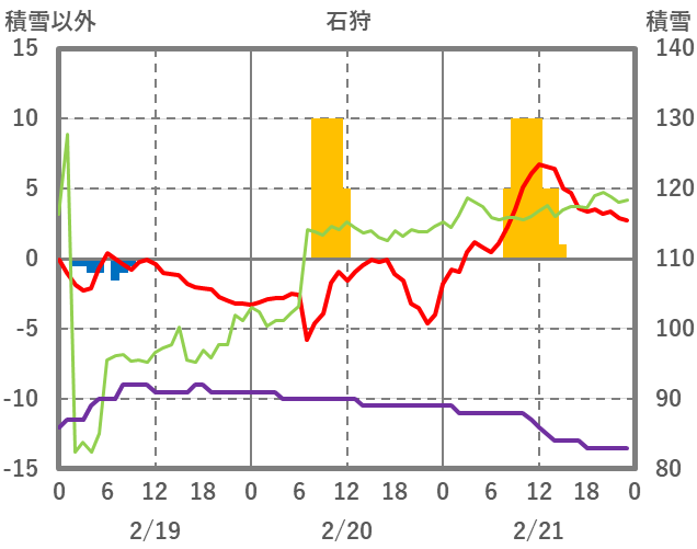 | 日 | 時 | 気温 | 降水 | 風向/風速 | 日照 | 積雪 | 降雪 |