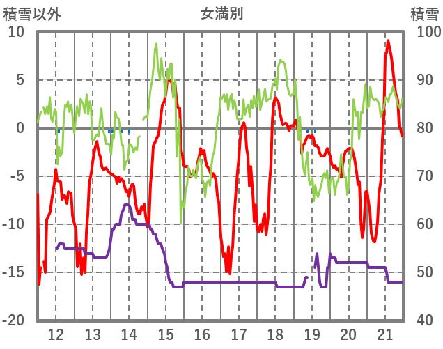 | 日 | 時 | 気温 | 降水 | 風向/風速 | 日照 | 積雪 | 降雪 |