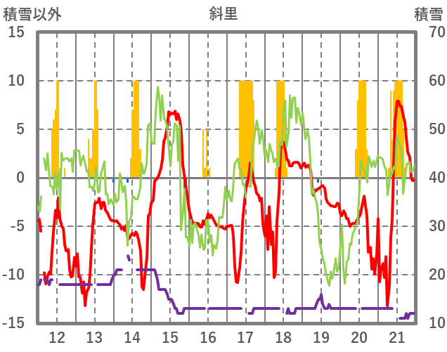 | 日 | 時 | 気温 | 降水 | 風向/風速 | 日照 | 積雪 | 降雪 |