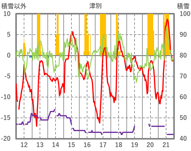 | 日 | 時 | 気温 | 降水 | 風向/風速 | 日照 | 積雪 | 降雪 |