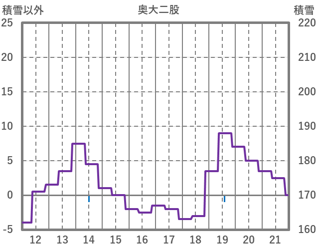 | 日 | 時 | 気温 | 降水 | 風向/風速 | 日照 | 積雪 | 降雪 |