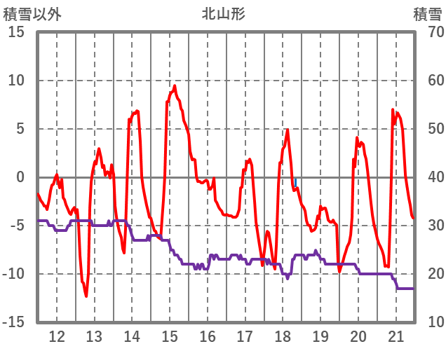 | 日 | 時 | 気温 | 降水 | 風向/風速 | 日照 | 積雪 | 降雪 |