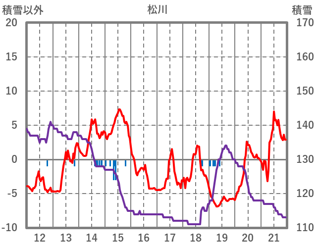 | 日 | 時 | 気温 | 降水 | 風向/風速 | 日照 | 積雪 | 降雪 |