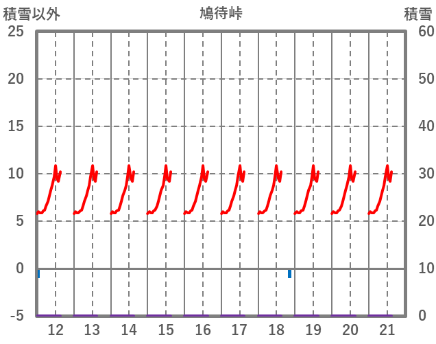 | 日 | 時 | 気温 | 降水 | 風向/風速 | 日照 | 積雪 | 降雪 |