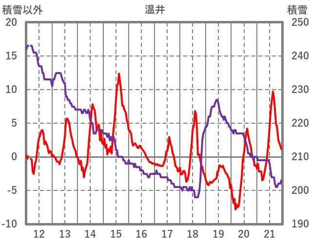 | 日 | 時 | 気温 | 降水 | 風向/風速 | 日照 | 積雪 | 降雪 |