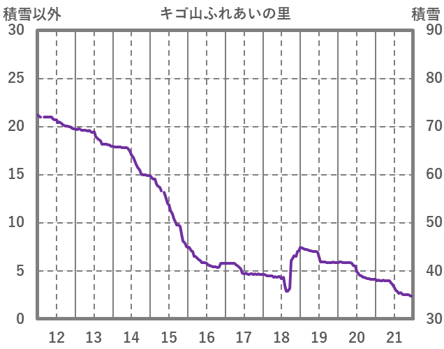 | 日 | 時 | 気温 | 降水 | 風向/風速 | 日照 | 積雪 | 降雪 |