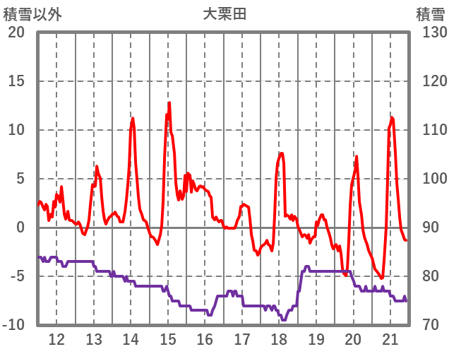 | 日 | 時 | 気温 | 降水 | 風向/風速 | 日照 | 積雪 | 降雪 |