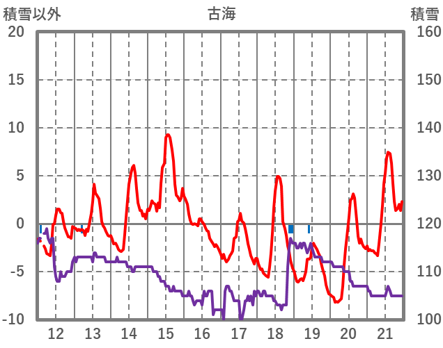 | 日 | 時 | 気温 | 降水 | 風向/風速 | 日照 | 積雪 | 降雪 |