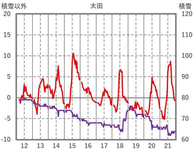 | 日 | 時 | 気温 | 降水 | 風向/風速 | 日照 | 積雪 | 降雪 |