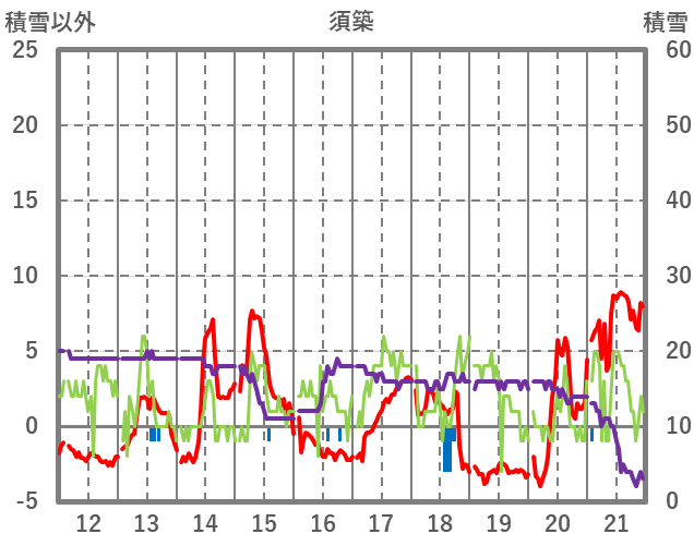 | 日 | 時 | 気温 | 降水 | 風向/風速 | 日照 | 積雪 | 降雪 |