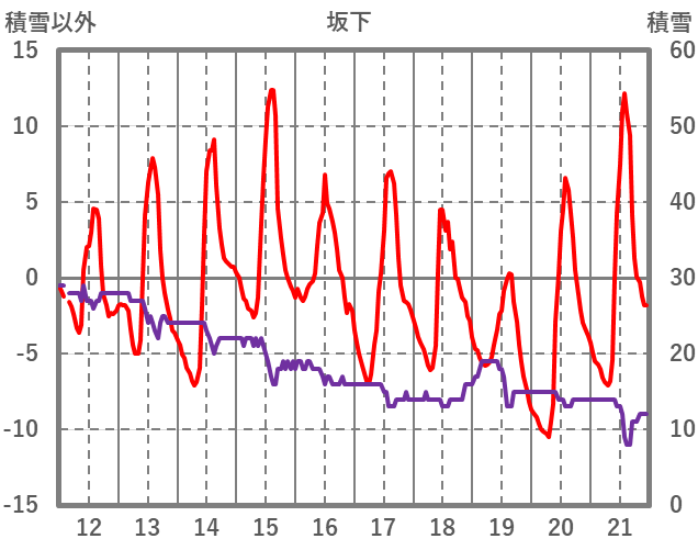 | 日 | 時 | 気温 | 降水 | 風向/風速 | 日照 | 積雪 | 降雪 |