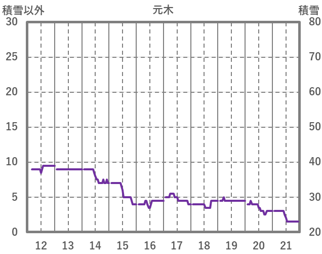 | 日 | 時 | 気温 | 降水 | 風向/風速 | 日照 | 積雪 | 降雪 |