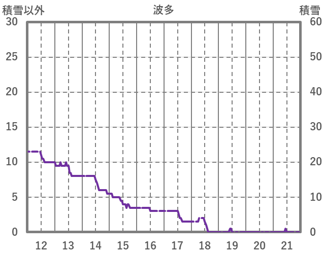 | 日 | 時 | 気温 | 降水 | 風向/風速 | 日照 | 積雪 | 降雪 |