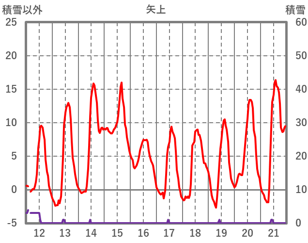 | 日 | 時 | 気温 | 降水 | 風向/風速 | 日照 | 積雪 | 降雪 |