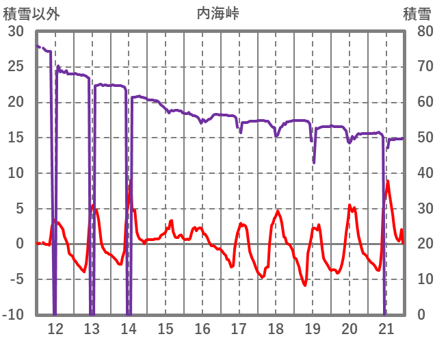 | 日 | 時 | 気温 | 降水 | 風向/風速 | 日照 | 積雪 | 降雪 |