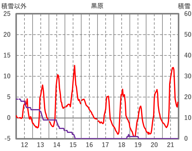 | 日 | 時 | 気温 | 降水 | 風向/風速 | 日照 | 積雪 | 降雪 |