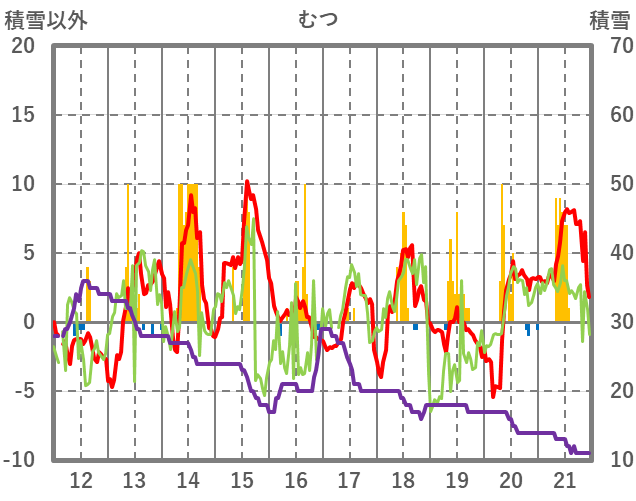 | 日 | 時 | 気温 | 降水 | 風向/風速 | 日照 | 積雪 | 降雪 |