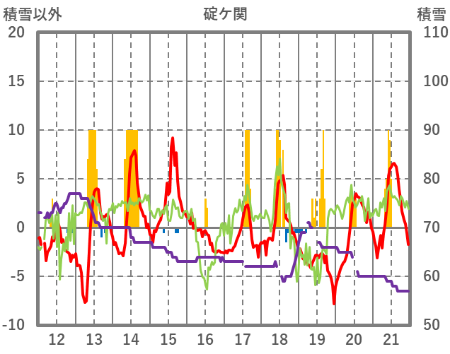 | 日 | 時 | 気温 | 降水 | 風向/風速 | 日照 | 積雪 | 降雪 |