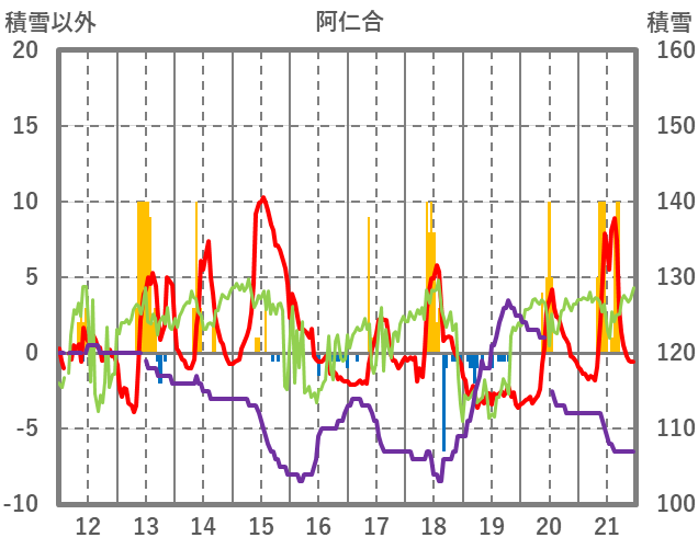 | 日 | 時 | 気温 | 降水 | 風向/風速 | 日照 | 積雪 | 降雪 |