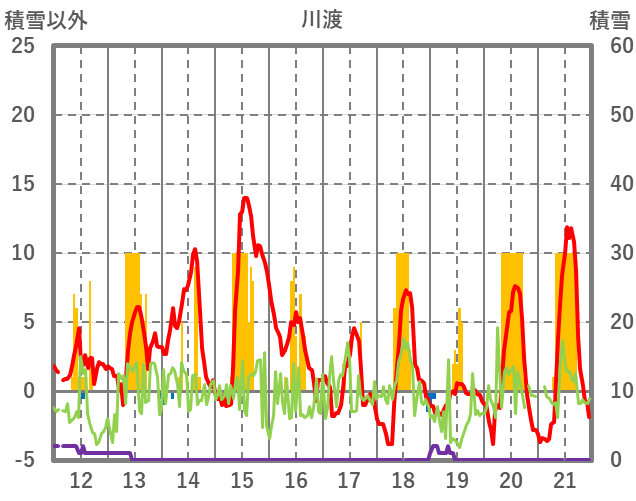 | 日 | 時 | 気温 | 降水 | 風向/風速 | 日照 | 積雪 | 降雪 |