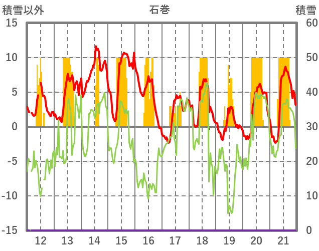 | 日 | 時 | 気温 | 降水 | 風向/風速 | 日照 | 積雪 | 降雪 |