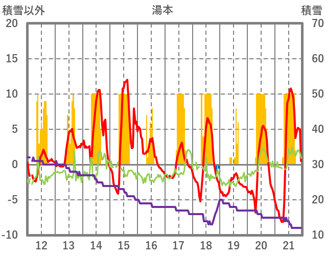 | 日 | 時 | 気温 | 降水 | 風向/風速 | 日照 | 積雪 | 降雪 |