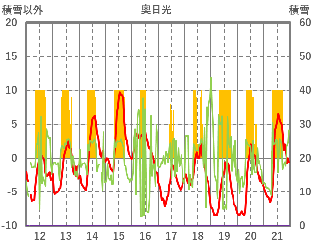 | 日 | 時 | 気温 | 降水 | 風向/風速 | 日照 | 積雪 | 降雪 |