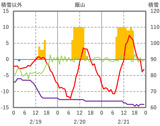 | 日 | 時 | 気温 | 降水 | 風向/風速 | 日照 | 積雪 | 降雪 |