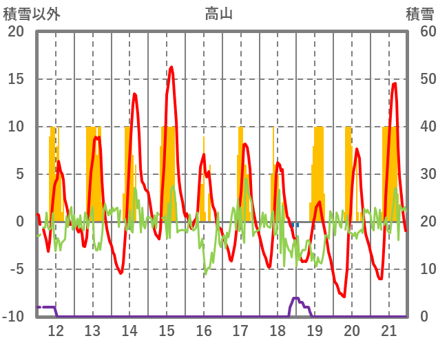 | 日 | 時 | 気温 | 降水 | 風向/風速 | 日照 | 積雪 | 降雪 |