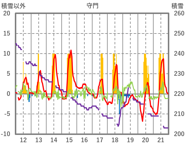 | 日 | 時 | 気温 | 降水 | 風向/風速 | 日照 | 積雪 | 降雪 |