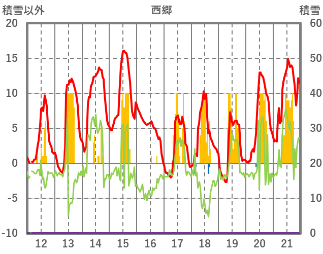 | 日 | 時 | 気温 | 降水 | 風向/風速 | 日照 | 積雪 | 降雪 |