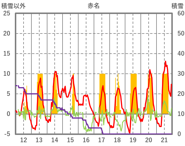 | 日 | 時 | 気温 | 降水 | 風向/風速 | 日照 | 積雪 | 降雪 |