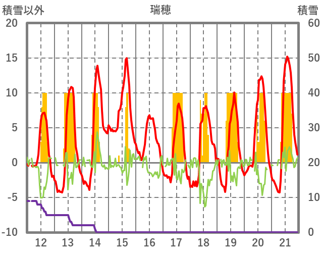 | 日 | 時 | 気温 | 降水 | 風向/風速 | 日照 | 積雪 | 降雪 |