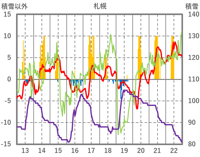 | 日 | 時 | 気温 | 降水 | 風向/風速 | 日照 | 積雪 | 降雪 |