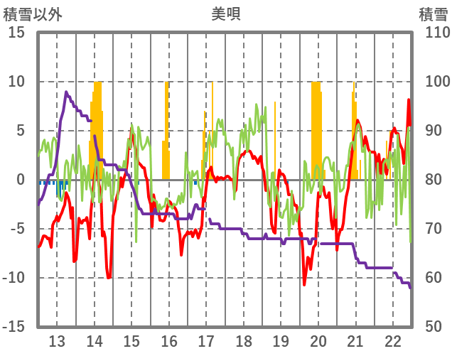 | 日 | 時 | 気温 | 降水 | 風向/風速 | 日照 | 積雪 | 降雪 |