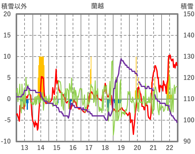 | 日 | 時 | 気温 | 降水 | 風向/風速 | 日照 | 積雪 | 降雪 |
