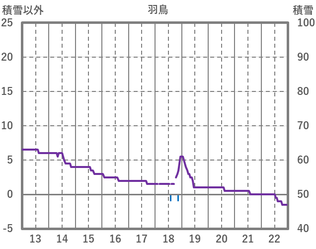 | 日 | 時 | 気温 | 降水 | 風向/風速 | 日照 | 積雪 | 降雪 |