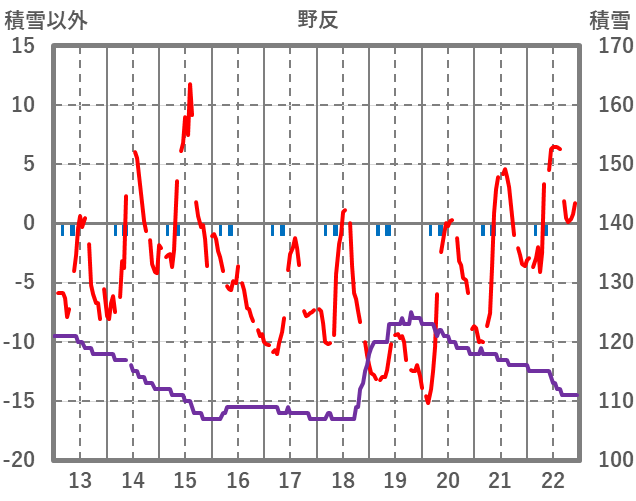 | 日 | 時 | 気温 | 降水 | 風向/風速 | 日照 | 積雪 | 降雪 |
