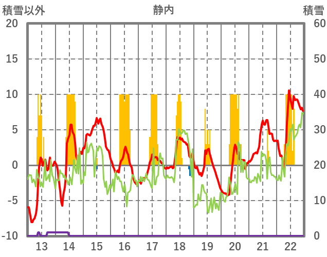 | 日 | 時 | 気温 | 降水 | 風向/風速 | 日照 | 積雪 | 降雪 |