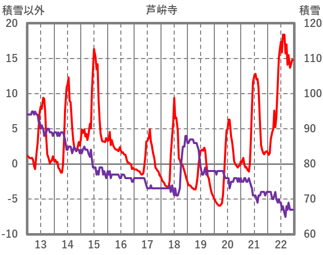 | 日 | 時 | 気温 | 降水 | 風向/風速 | 日照 | 積雪 | 降雪 |
