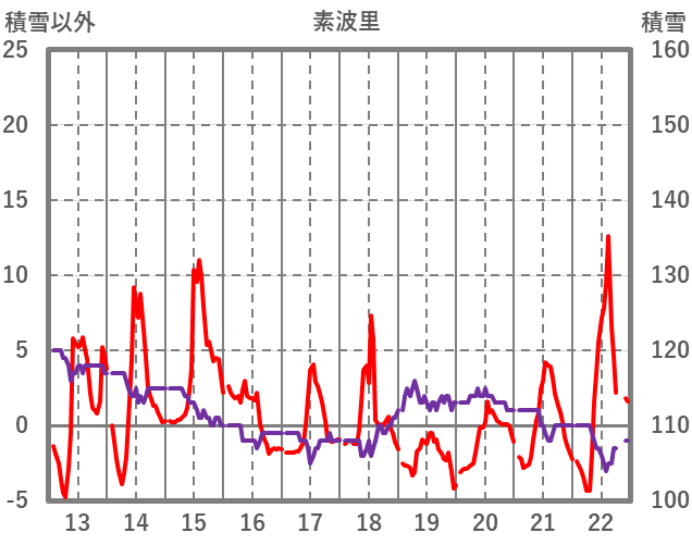 | 日 | 時 | 気温 | 降水 | 風向/風速 | 日照 | 積雪 | 降雪 |