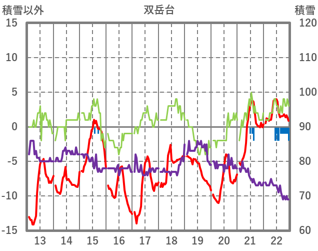 | 日 | 時 | 気温 | 降水 | 風向/風速 | 日照 | 積雪 | 降雪 |