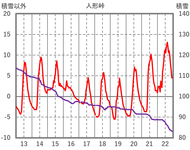 | 日 | 時 | 気温 | 降水 | 風向/風速 | 日照 | 積雪 | 降雪 |