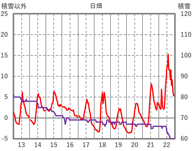 | 日 | 時 | 気温 | 降水 | 風向/風速 | 日照 | 積雪 | 降雪 |