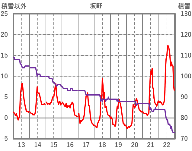| 日 | 時 | 気温 | 降水 | 風向/風速 | 日照 | 積雪 | 降雪 |