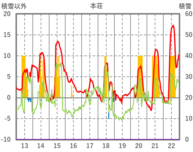 | 日 | 時 | 気温 | 降水 | 風向/風速 | 日照 | 積雪 | 降雪 |