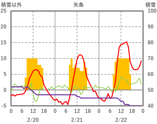 | 日 | 時 | 気温 | 降水 | 風向/風速 | 日照 | 積雪 | 降雪 |
