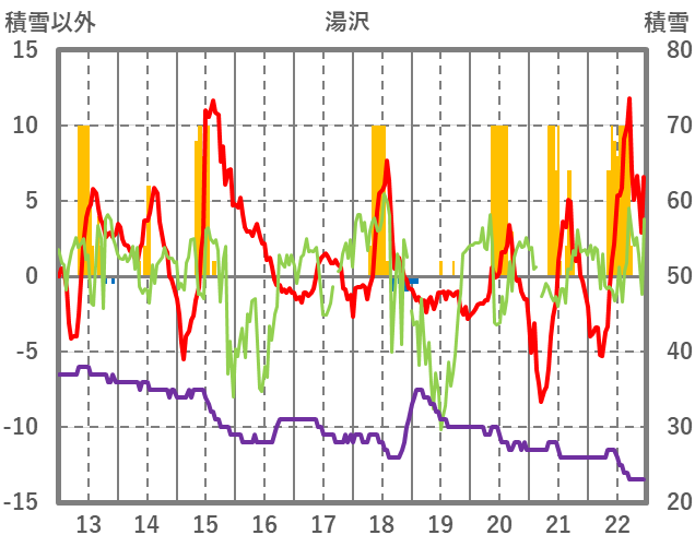 | 日 | 時 | 気温 | 降水 | 風向/風速 | 日照 | 積雪 | 降雪 |